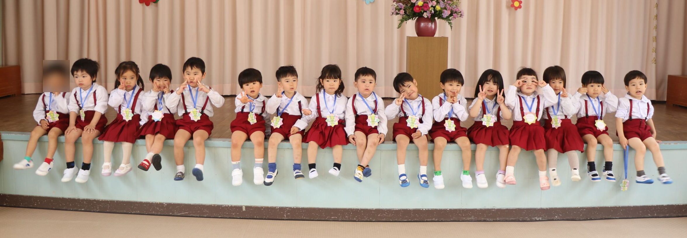 令和8年度がスタートしました! もも組さんは、先週の金曜日に入園式を終え、今週から本格的にスタートしました。 今年1年、どうぞよろしくお願いします。 では、早速、今週のもも組、スタートです。 月曜日は、対面式で、ばら組さん・ゆり組さん・たんぽぽ組さんと初めましての式をしました。 世界の鐘を聴いたり… ばら組さんからは「ごにゅうえんおめでとうございます。なかよくいっしょにあそびましょう!」という言葉をいただいたり、ゆり組さんからは、一人一人にメダルをプレゼントしてもらったりしました。 最後にみんなで、はいチーズ! 令和8年度のもも組さん、16名です。 その後は、着替えをした後、牛乳を飲みました。 牛乳を飲んだ後は、砂場で遊びました。 大きなスコップで、お山を作ったり、アイスクリームを作ったり、バケツに砂をいっぱい入れて遊んだりしました。 お昼ご飯を食べてから、保育室で遊びましたが、たんぽぽ組さんからの進級児さんが多い今年のもも組さんは、とても落ち着いていて、それぞれが好きな遊びをどんどんすることができています。 ドレスや、サングラスでおしゃれさん、の子ども達です。 火曜日は、朝から天気も良く、戸外で遊びました。 前日が、砂場限定の遊びだったので、色々と好きな遊びをしてもらいました。 元気いっぱいの、もも組の子ども達です。 水曜日は、雨だったので、室内でゆっくり遊びました。 粘土やお絵かきをしたり、おもちゃで思い思いの遊びをしました。 その後は、全員で幼稚園内を探検しました。 色々な場所を回って、説明をしながら探検をし、最後にホールに到着。 せっかくなので、みんなで音楽に合わせて、体操をしたり、踊りを踊ったりしました。 ちょっと疲れたので、みんなでごろーんと横になった様子です。 木曜日は、お天気になったので、お散歩に行きました。 小学校の南庭から、小学校のグラウンドを通り、中高の温水プールのところまで歩きました。 途中で見つけたヘビイチゴや落ち葉、お花等を摘んだり拾ったり、たんぽぽの綿毛を飛ばしたりしながら、みんなで歩いていきました。 いっぱい歩いておなかもすいたので、この日の給食はとっても食べがよかったです。 これからも、機会を見つけて、どんどん散歩にも行きたいと思います。 木曜日は、園庭にこいのぼりが出て、子ども達も大喜びでした。 金曜日は、戸外で遊びました。 途中、雨がポツポツ降ってきたので、廊下に座って雨宿りをしたりしましたが、すぐに雨もやんで、元気いっぱい遊ぶことができました。 新入園児さんも少しずつ園生活に慣れてきてくれています。進級児さんも、環境が変わり、最初は少し緊張もしていましたが、段々ともも組の生活にも慣れてきてくれています。 それでも、1週間頑張ったので、疲れていると思います。この週末はゆっくり休んで、来週また元気に登園してくれることを願っています。 来週は、水曜日にクラス写真を撮影しますので、制服(ブレザーも)、ベレー帽、白ソックス着用で、登園してください。 木曜日は、身体測定がありますので、女児で髪をくくっている方は、上ではくくらずに、横でくくってくるようにしてください。 金曜日は、4月生まれの誕生会があります。4月生まれの子どもさんをお祝いします。4月生まれの子どもさんの保護者の方、よろしくお願いします。 土曜日は、参観・総会です。日程は、9:30~10:30参観・クラス懇談、10:35~11:30後援会総会となっています。よろしくお願いします。