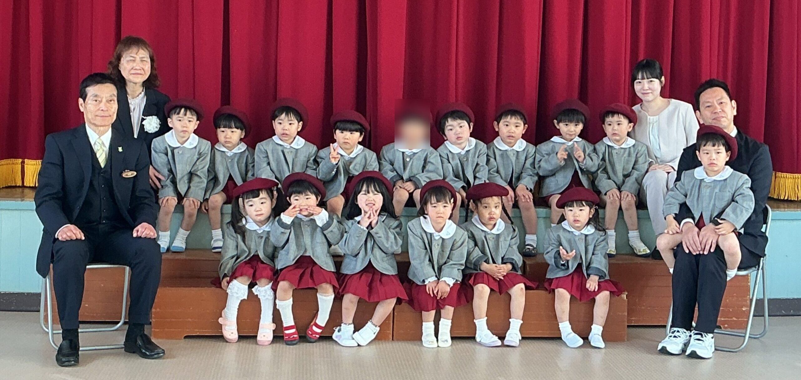 8年度のもも組がスタートして2週間が経ちました。 もも組での生活にも、だいぶ慣れてきて、毎日元気に過ごすことができています。 今週は、暑かったり、雨が降って寒かったりしましたが、風邪などひいていませんでしょうか? また、土曜日は、参観・総会があり、たくさんの保護者の方にご参加いただき、ありがとうございました。 では、今週のもも組、スタートです。 月曜日は、壁面製作をしました。 スタンプをしたり、シールを貼ったりして、上手に製作をすることができました。 上手に、スタンプをすることができましたよ。シールも上手に貼っていました。 その後は、園庭で遊びました。 園庭のサクランボの木が赤い実をつけていて、みんなでおいしくいただきました。 火曜日は、園庭で遊びました。 サクランボを食べたり、砂遊び、遊具での遊び、三輪車、てんとう虫やダンゴムシを見つけたりして、元気いっぱい遊びました。 水曜日は、クラス写真を撮影しました。 みんな、かしこまっています(笑) とてもかわいらしく、写真撮影ができました。 その後は、こいのぼりの製作をしました。 台紙に、パスで模様を描きました。 その後、園庭で遊びました。 思い思いの遊びをして、楽しく過ごしました。 木曜日は、身体測定を受けた後、前日に模様を描いたこいのぼりに、絵の具で色を塗りました。 一人一人色を塗っていったので、待っている間、粘土やお絵かきをしたり、絵本を読んだりして遊びました。 粘土では、ハンバーガー、ケーキ、お団子、ヘビなどを作る子どもや、押し型をして遊ぶ子ども等、それぞれが、イメージするものを作って遊んでいました。お絵描きも、自分の描きたいものを上手に描いている姿がありました。 金曜日は、今年度初めてのお誕生会でした。 もも組からは、2人のお友達が4月生まれで、ステージに上がり、みんなからお祝いをしてもらいました。 4月生まれのお友達、おめでとうございます! もも組からの歌のプレゼントは、「せんせいとおともだち」の歌です。 大きな声で歌うことができました。 4月の、出し物は、ばら組さんが踊りを踊ってくれました。 とても上手に踊っていて、もも組の子ども達も見入っていましたよ。 その後は、ホールで体操をしたり、踊りを踊ったりしました。 体を動かすのが、とても好きなもも組の子ども達です。 土曜日は、初めての参観・総会でした。 親子で、こいのぼりの製作をしました。 糊を使って、目やヒゲや手型のウロコを貼って、完成です。 ご参加いただいた保護者の皆様、ありがとうございました。おかげさまで、無事にこいのぼりを作ることができました。出来上がったこいのぼりは、あと少し手を加えて、5月に保育室の壁面に飾りたいと思っています。楽しみにしていてくださいね! その後のクラス懇談では、クラス委員さんを決めたり、1年間の抱負をお話させていただいたりしました。 皆様のご協力により、クラス委員さんも無事に決まり、ホッとしました。 この1年間、どうぞよろしくお願いします。 さて、来週は、30日(木)に、火事の避難訓練があります。初めての避難訓練で、びっくりして泣いてしまう子どもさんもいるかもしれませんが、抱っこをしたりして、安心できるようにかかわっていきたいと思います。どうぞよろしくお願いします。 さらに、母の日のプレゼント作りもしたいと思っています。 また、来週からは、ゴールデンウィークに入ります。お出かけをしたりする機会も増えると思いますが、事故やケガなどには十分お気を付けくださいね。 また来週、元気に幼稚園に登園してくれることを願っています。