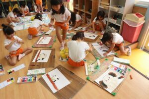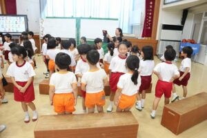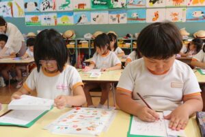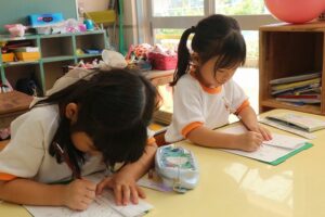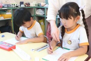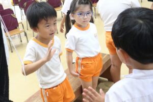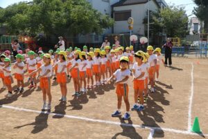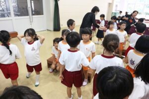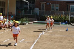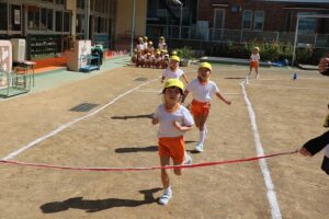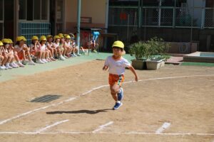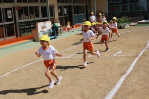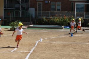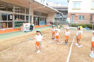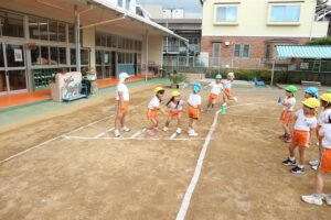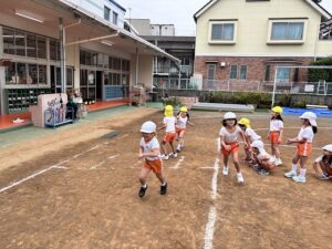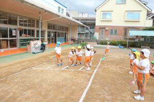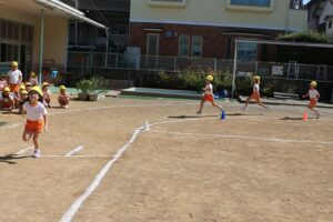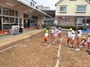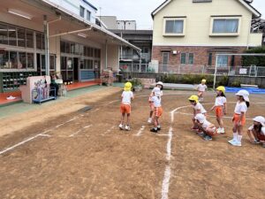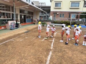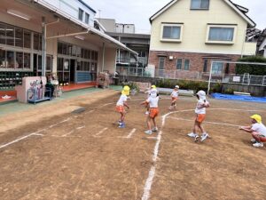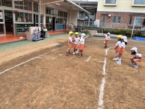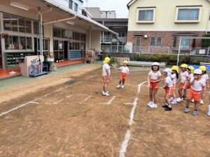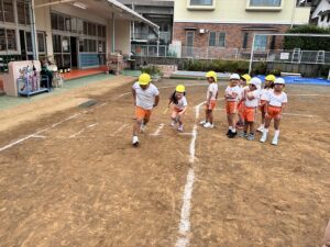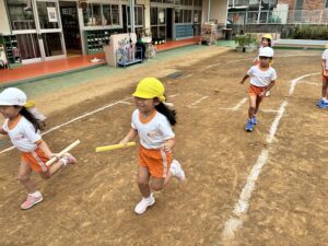 幼稚園に帰ってきてから、クラス全員でリレーの練習をしました。