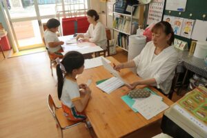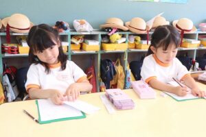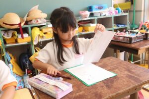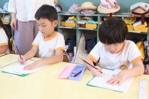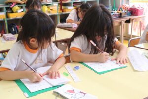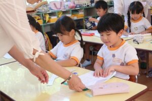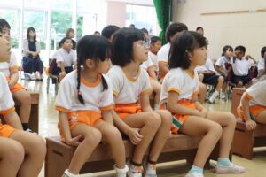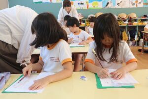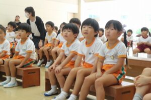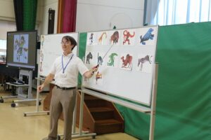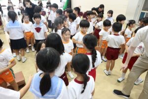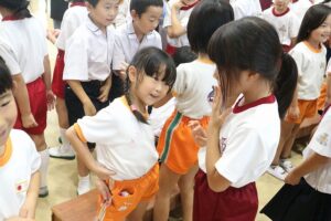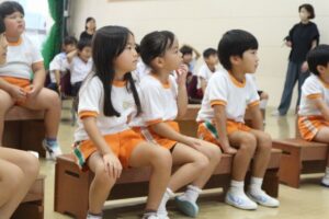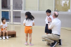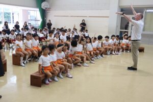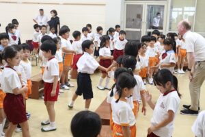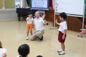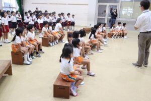 子ども達は、緊張することもなく、とても楽しむことができていました。ほぼすべて英語で話をするネイティブの先生と1年生が、しっかり英語をしゃべっているのを目の当たりにして、感心しました。