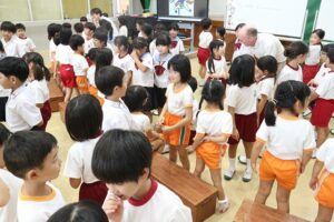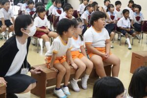 その後は、幼小交流で、高知小学校の1年生の英語の授業に参加をしました。