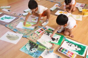 今月は、自分の好きな動物をパスと絵具で描いてみました。