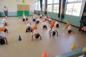 よさこい・組体操・パラバルーン・跳び箱・リレーなど一通り練習することができました。
