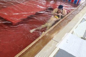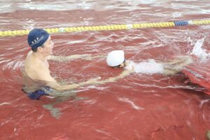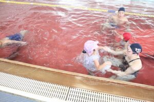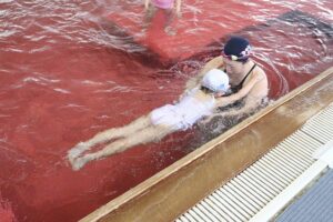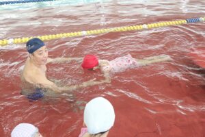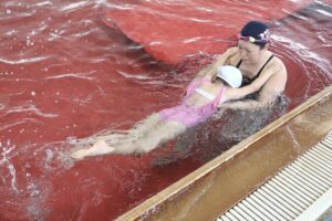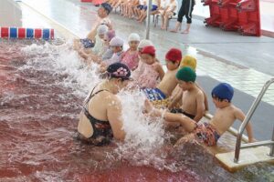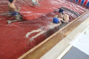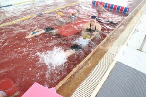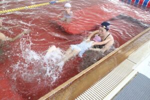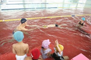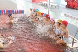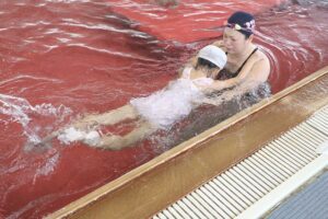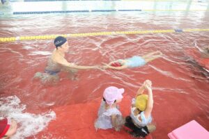 温水プールも残りあと1回。楽しんで、水と触れ合ってほしいと思います。