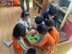 また、ばら組は22日のクリスマス会で合奏をするのですが、その担当楽器を決めて、練習を始めました。