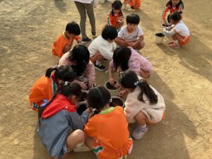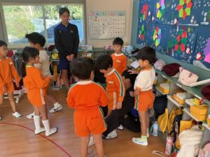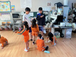 子ども達は中学生のお兄さんたちが大好きで、楽しく遊ぶことができました。