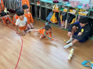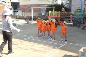 ダンスや、色々な鬼ごっこなどをして楽しく体を動かして遊ぶことができました。