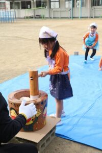 日本の伝統行事で、おもちつきを体験することができて、本当に良かったです。