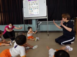 また、保護者の方から「家で英語を言っています。びっくりしました」とお話しがあり、ここで学んだことをお家でお話ししてくれていることが嬉しかったです💕