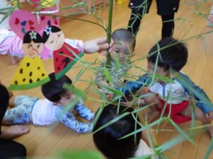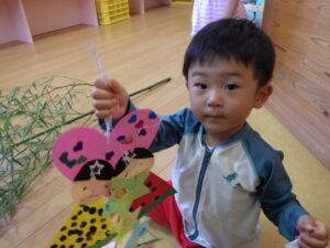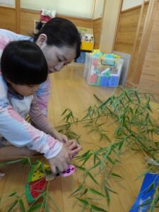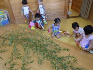日曜日は七夕ですね。今週は笹飾りの仕上げをしました。