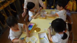 ๆจๆฅใฎ็ถใใงใใใฎใผใใฎใใใใ่ฒผใใใในใใใผใซใผใง็ตตใๆใใพใใใ