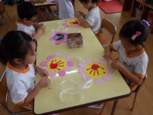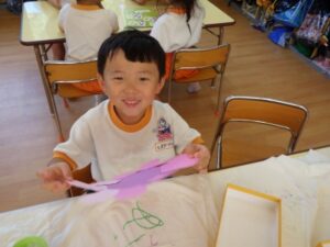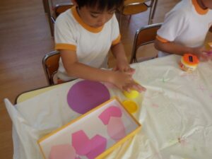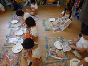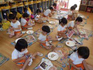 来週は切った食べ物を糊で紙皿に貼り付けます。(*^▽^*)