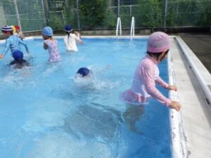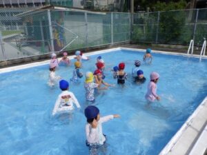 来週は…英語であそぼう、造形、身体測定、誕生会、温水プール、体験入園説明会があります。