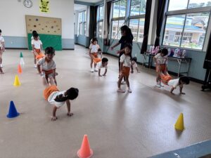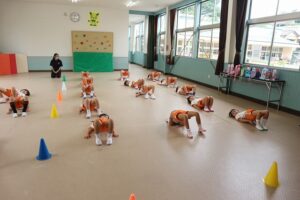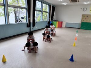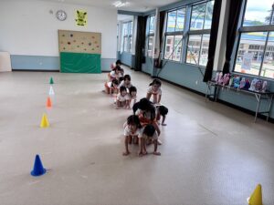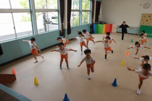 月曜日は、今年度初めて全園児で体操をしました。運動会に向けて、少しずつ頑張っています。