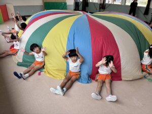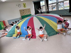 今までで、一番きれいにパラバルーンが膨らんで、子ども達も大喜びでした。