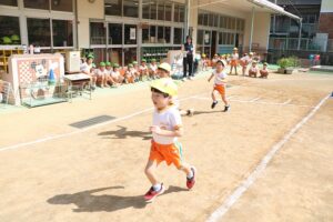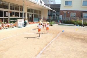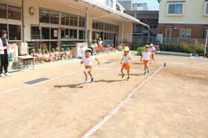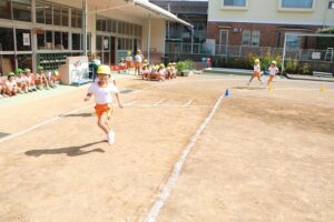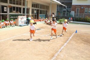 勝ってうれしい、負けて悔しいという思いも経験しながら、精一杯かけっこに取り組んでくれています。勝ち負けがすべてはないので、最後まで一生懸命走ることが大事だと、子ども達には伝えています。