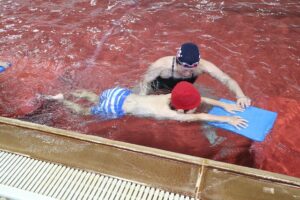 とても楽しみながら、温水プールに参加してくれています。また、NSPのコーチの指導の仕方がとても上手で、本当に子どもたちが生き生きとプールを楽しんでいる姿が見られています。さすが、”餅は餅屋”ですね。専門家は違う!!というのを、目の当たりにしています。