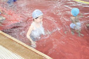 さて、来週は月曜日に幼小交流で1年生の英語の授業に参加します。保護者の方にも参観をしていただけますので、興味のある方はぜひお越しください。11:00~11:40の予定です。また、温水プールもあります。