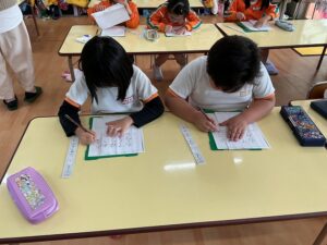 作品展で、硬筆作品も飾りますので、楽しみにしていてくださいね。