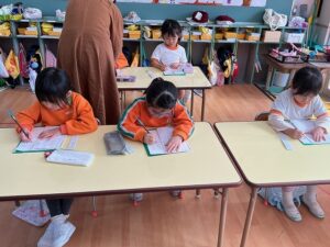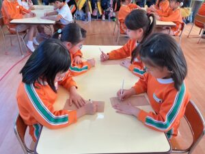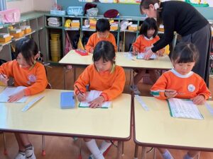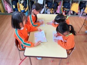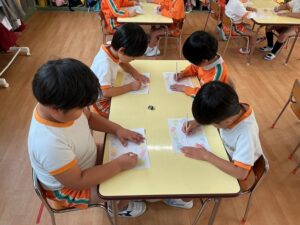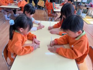 ใใฎๅพใฏใๅคๅดๆ่ฌใฎๆ็ดใๆธใใพใใใๅนผ็จๅใงใไธ่ฉฑใซใชใฃใฆใใๆนใ ใ10ๅใซใใใใ2๏ฝ3ไบบใงใๆธใใพใใใๅ ๅฎนใ่ชๅ้ใง่ใใๆธใใใจใใงใใพใใใ