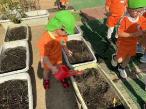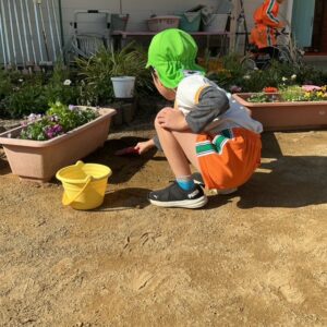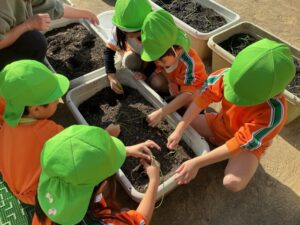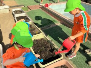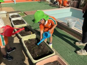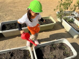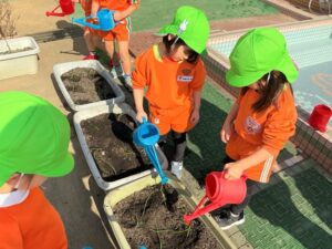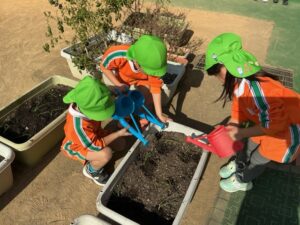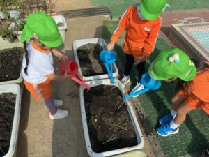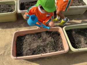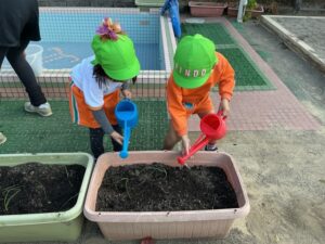 1äēē一つ、小さãĒįŠ´ãĢ植えãĻ、ã‚Ŋãƒŧッと土をかãļせãĻ水をあげぞした。