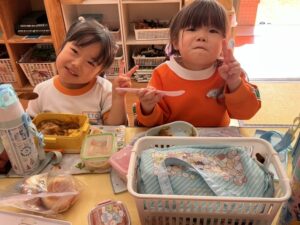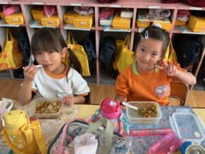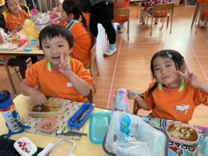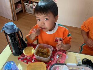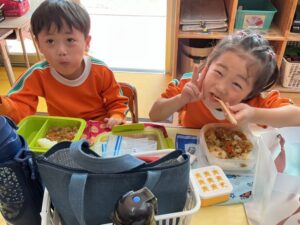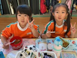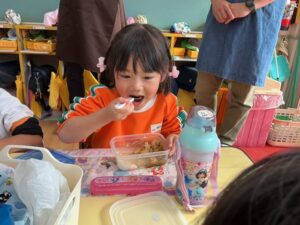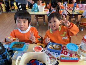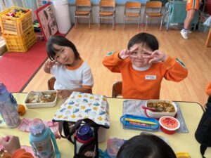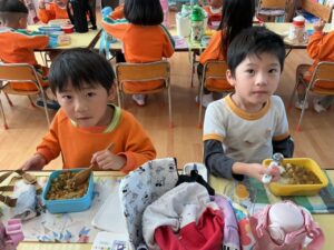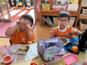 äģŠå›žã¯į•°åš´éŊĸä礿ĩã§ã€3つぎグãƒĢãƒŧプãĢ分かれãĻ、各äŋč‚˛åŽ¤ã§éŖŸãšãžã—ãŸã€‚