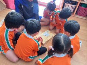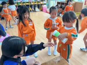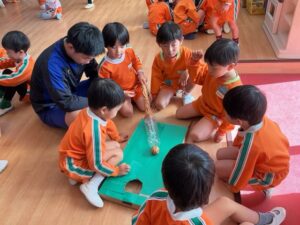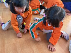 来週は…今学期最後の「英語で遊ぼう」と「造形」、身体測定、誕生会、参観・清掃・避難訓練(引き渡し訓練)があります。