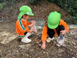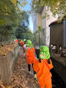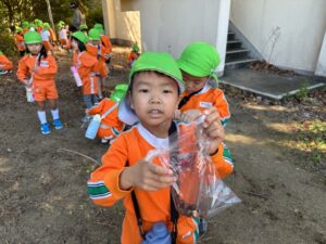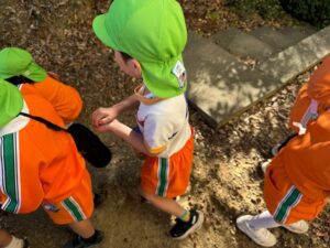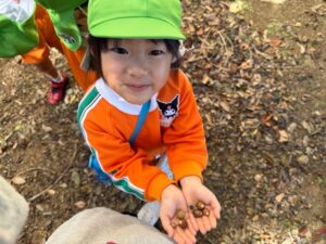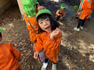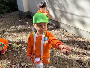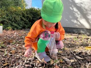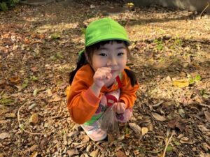 ドングリを見つけたり、葉っぱの上を歩いて感触を楽しんだり、綺麗に咲いている菊の花を見たりと、自然を楽しむことができました。また行きたいと思います。