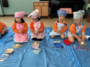 ミニ鏡餅も作りました!手のひらで丸めて…😄