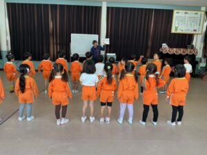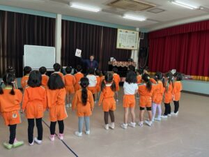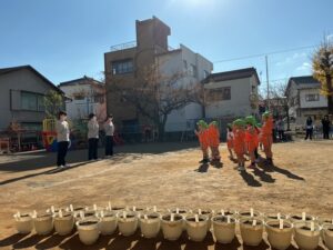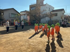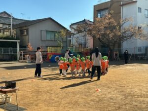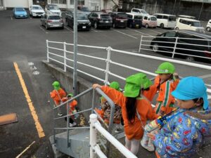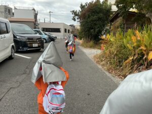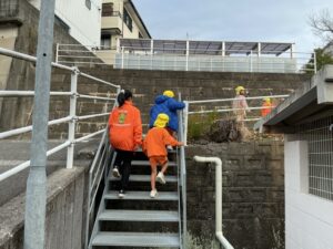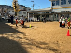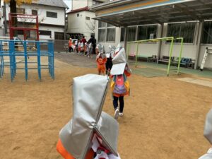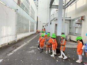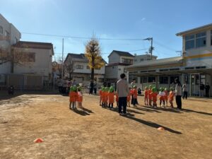 その後、避難訓練をしました。今回は保護者の方も一緒に避難場所まで行き、引き渡し訓練をしました。