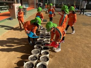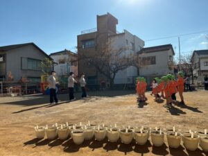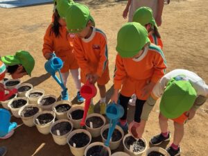 チューリップに水をあげたり、好きな場所で遊びました!