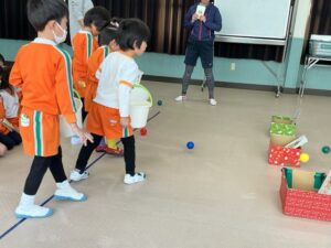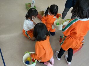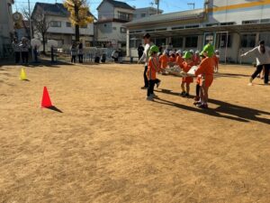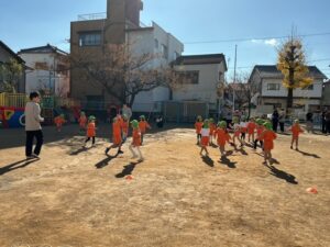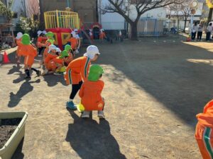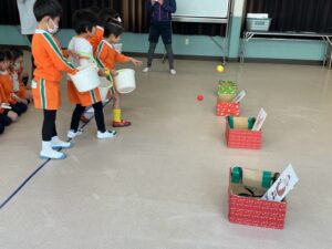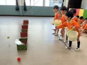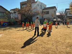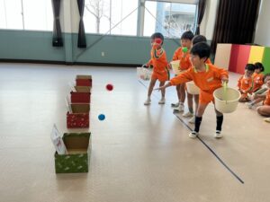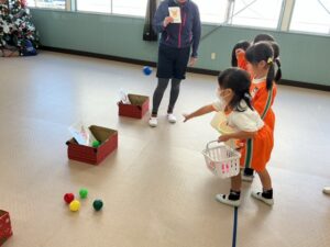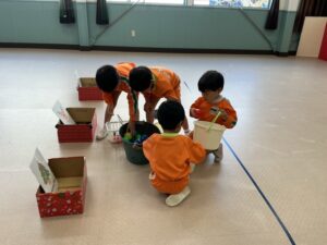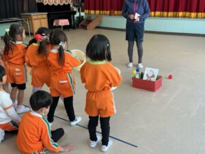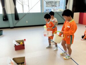 説明を聞き、早速遊びました。大笑いしながらたくさん体を動かして遊びました。
