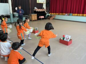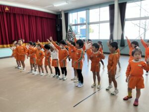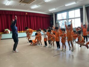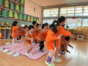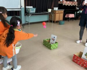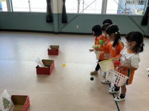 ダンス、ジャンケン列車、バナナ鬼、新聞ボール運び、色鬼などをしました。