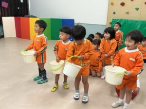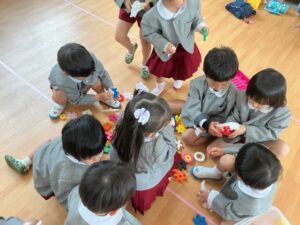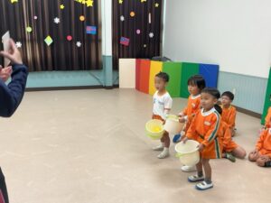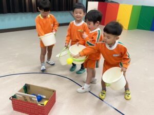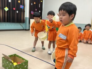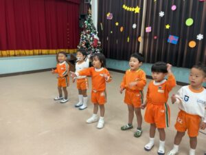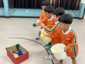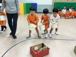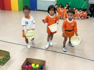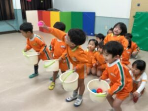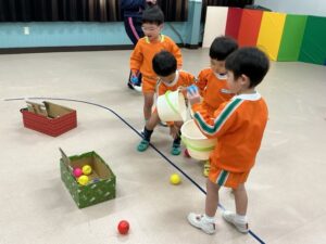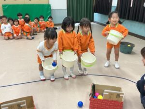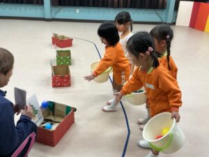 クリスマスにちなんだゲームをしたのですが、ミスイヌイが言った数字の数ボールを取るというミッションをほとんどのお友だちがクリアしていました💓