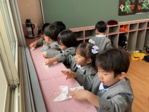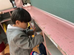 二学期たくさんお部屋で楽しく遊んで過ごしたお部屋をきれいにお掃除しました。