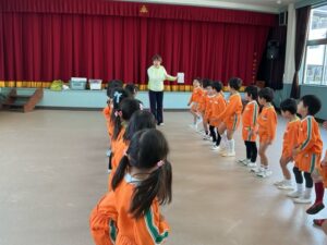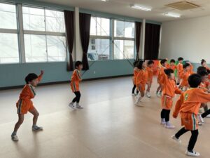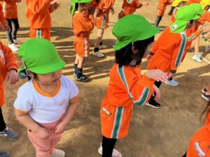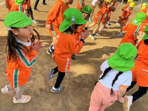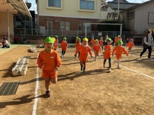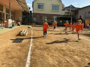 元気いっぱい体操をして、自分のペースでかけ足をしています。