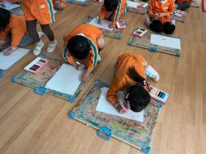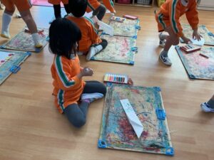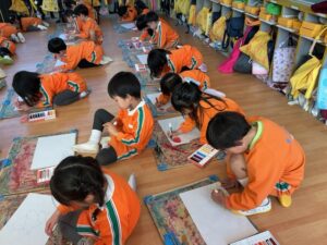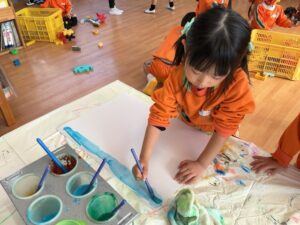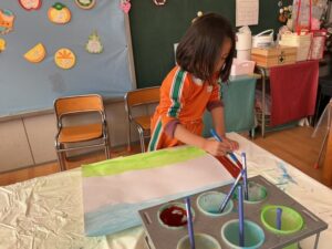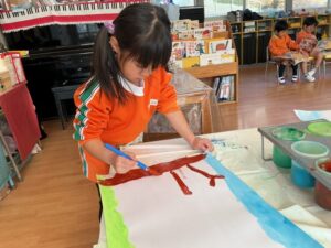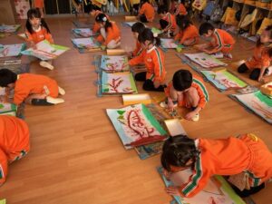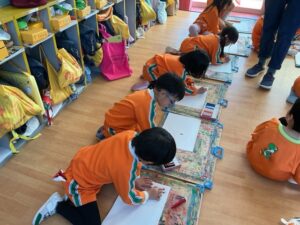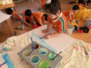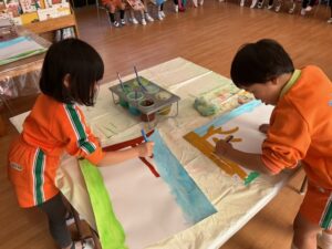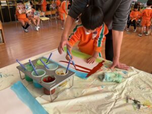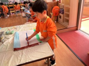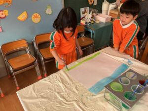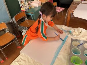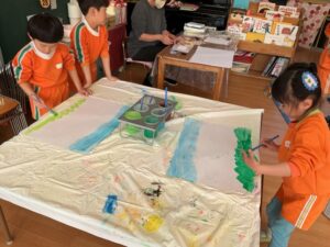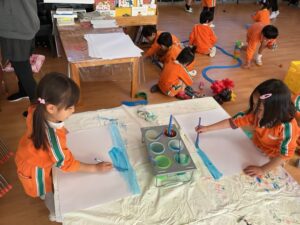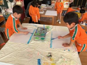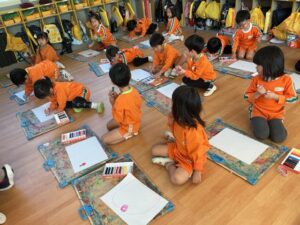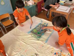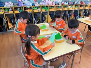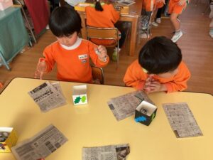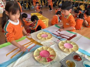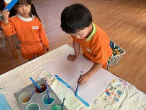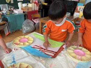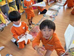 同じく火曜日、造形では白い紙に絵を描いて、紙飛行機を作りました。