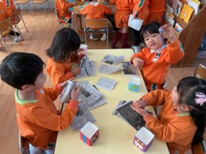 来週は…英語であそぼう、造形、豆まき、身体測定、誕生会、避難訓練(地震)があります。