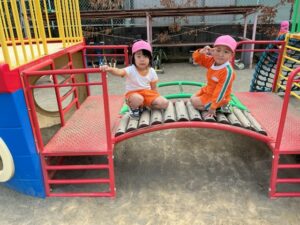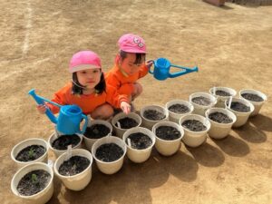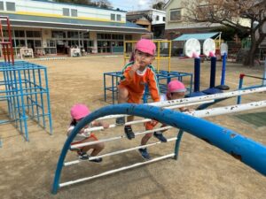 チューリップに水をあげたり、砂場で遊んだり、太鼓橋にも挑戦しました✨