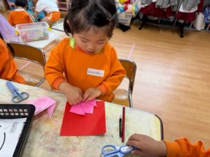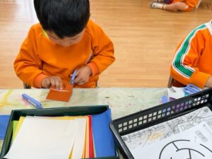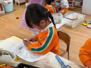 折り紙を折ったり、ぬり絵を上手に塗って形を切り取ったり、製作も楽しんでいました♪