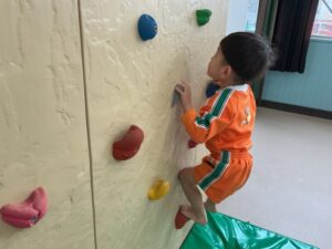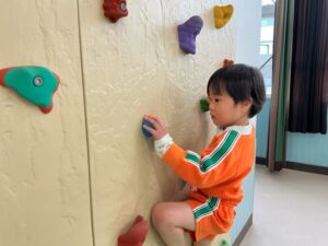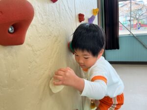金曜日はホールでボルダリングを楽しみました。