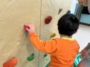 ボルダリングの頂上に貼っているタッキーをタッチして降りてくる姿が見られました。