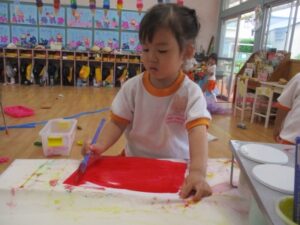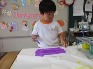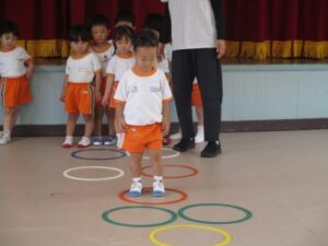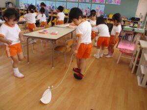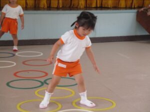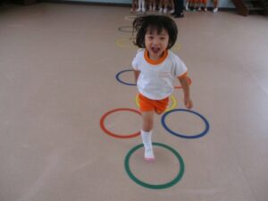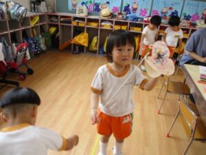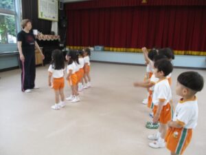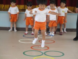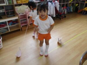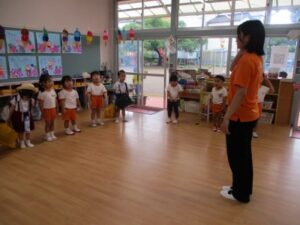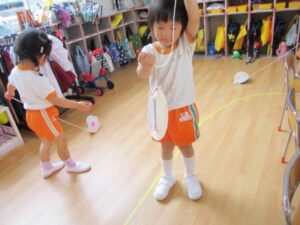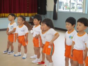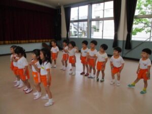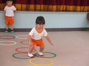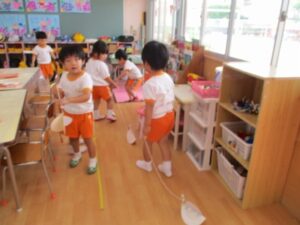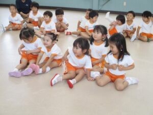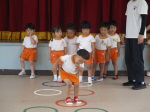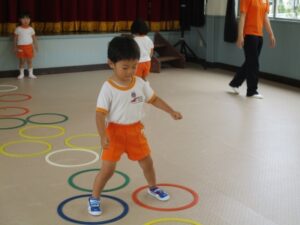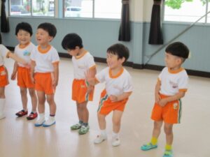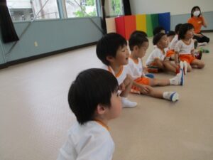 雨が続き、外遊びもプール遊びも楽しめず・・・ホールで体を動かそう!と楽しみました(⌒∇⌒)