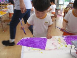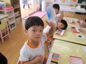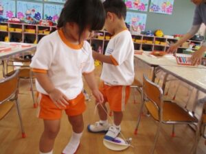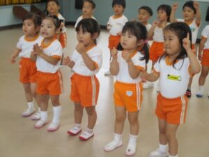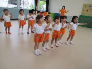 雨が続き、プールができず残念でしたが、保育室やホールで体を動かして楽しみました🎵