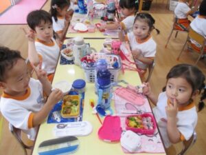 「なんでも食べれるもん」「今日もピカピカマンになるよ」と頑張っている子ども達です!!