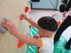 ボルダリングにも挑戦!!上まで登れるお友だちもいて驚きました!!