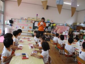 挨拶はぱっちり!!天気も英語で少しずつ言えるようになっていて驚きました!!