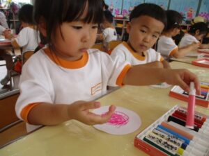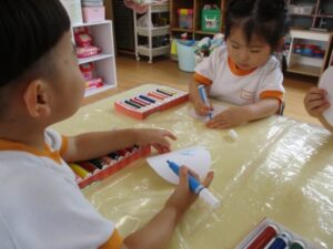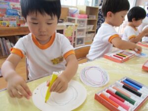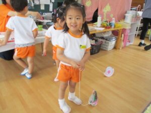 金曜日には、一日先生になってもらい、カタツムリの製作をしてくれました。