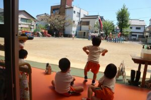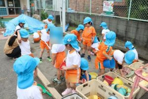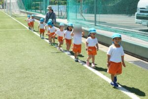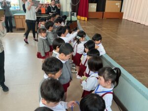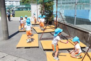 å°åĻæ ĄãŽååēãããå°åĻæ ĄãŽã°ãŠãĻãŗããéããä¸éĢãŽæ¸Šæ°´ããŧãĢãŽã¨ãããžã§æŠããžããã